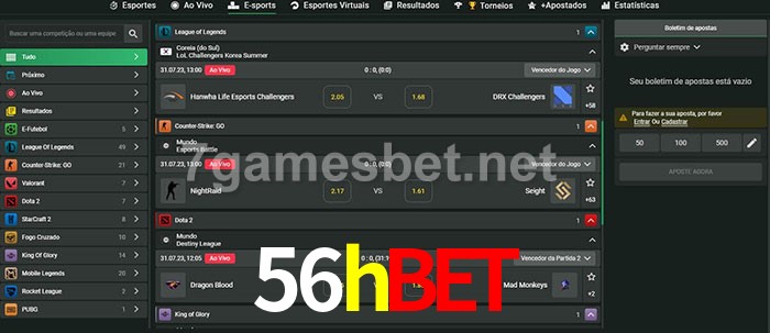 O 56hbet oferece uma grande seleção de opções de apostas em e-sports com probabilidades competitivas